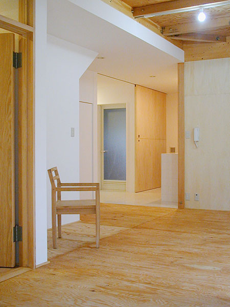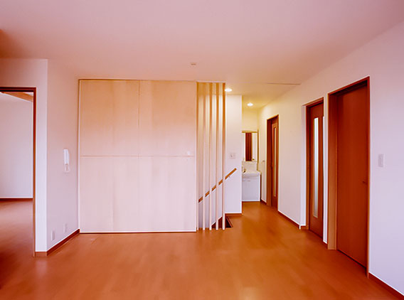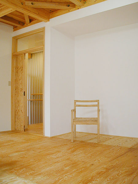 2F部分は個々スペースを重視し、明るく安全な設計をし、 1Fをデザイナー家族の為、自作家具などにより成長する空間と割り切った